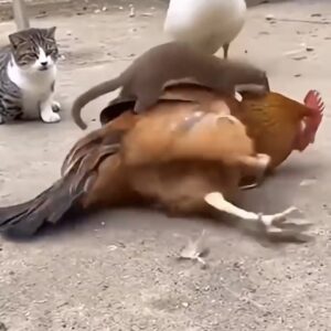 It started as an ordinary morning in the yard, with the animals going about their usual routines. The rooster strutted confidently, pecking at the,